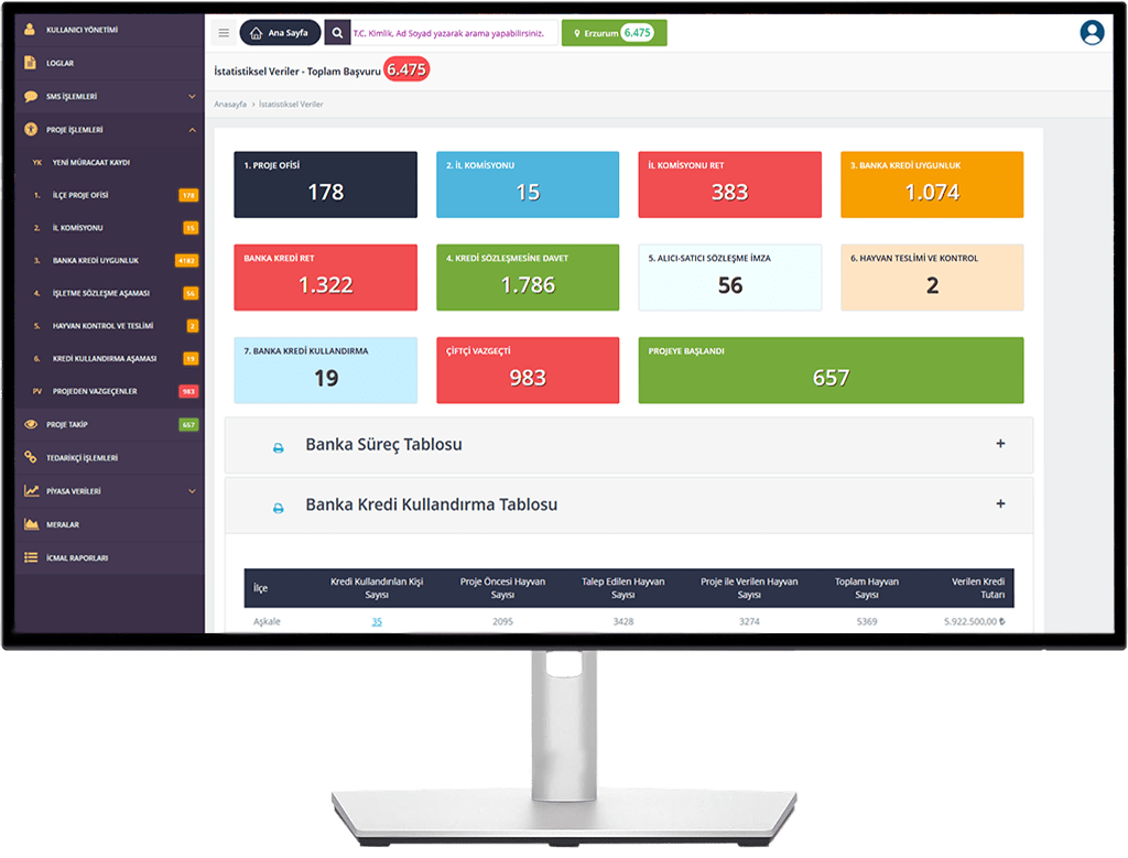 T.C. Ziraat Bankası, İl Valilikleri ve Tarım İl/İlçe Müdürlükleri tarafından kullanılan bu sistem, tüm paydaşların proje süreçlerini etkin bir şekilde yönetmesini sağlar.